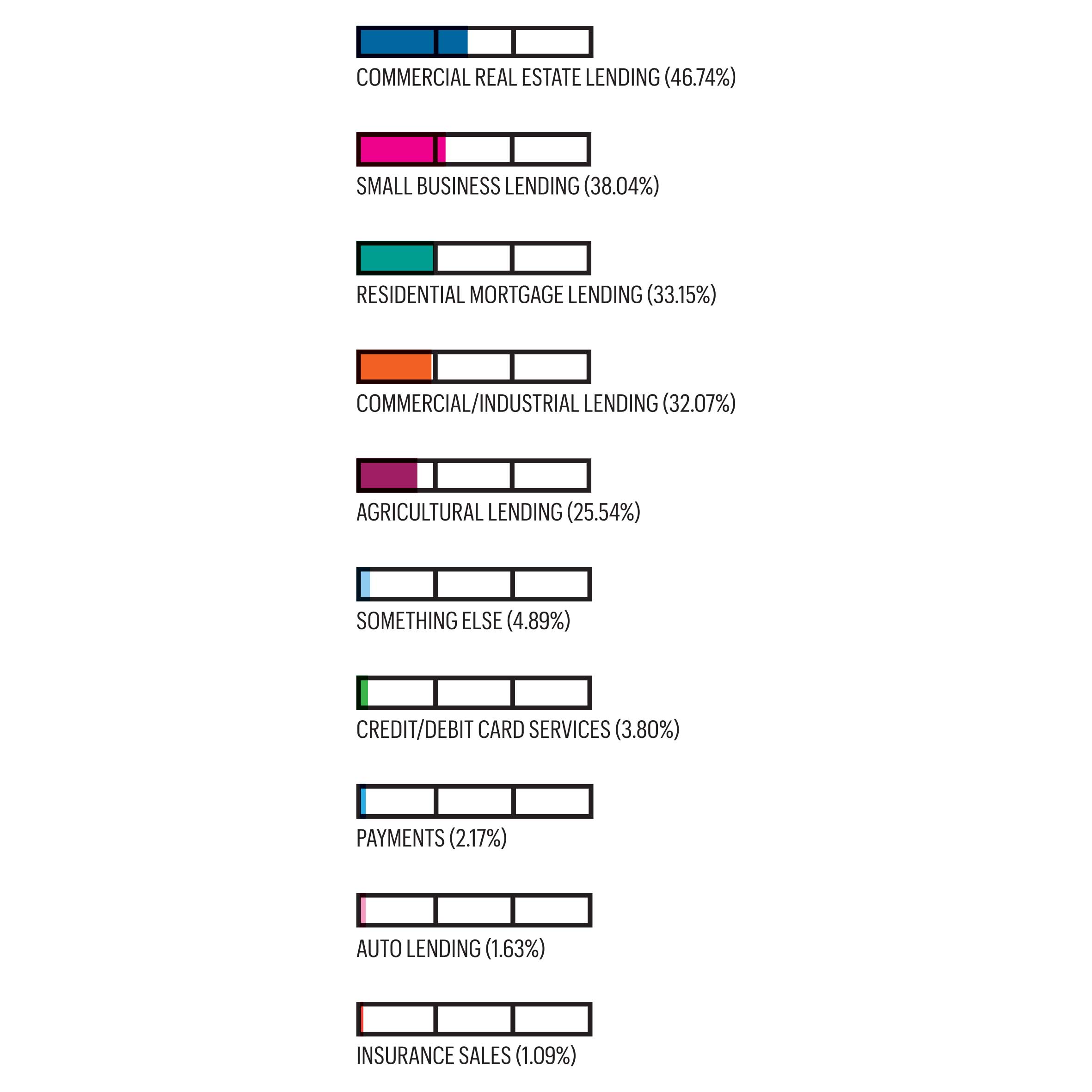 Broken down by loan type, about 47% expect commercial real estate lending to be a significant source of income, 38% highlighted small business lending as a key revenue driver, and 33% pointed to residential mortgage lending as a critical area for profitability. Commercial and industrial lending (32%) and agricultural lending (26%) were also noted as important.